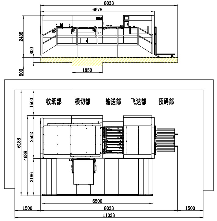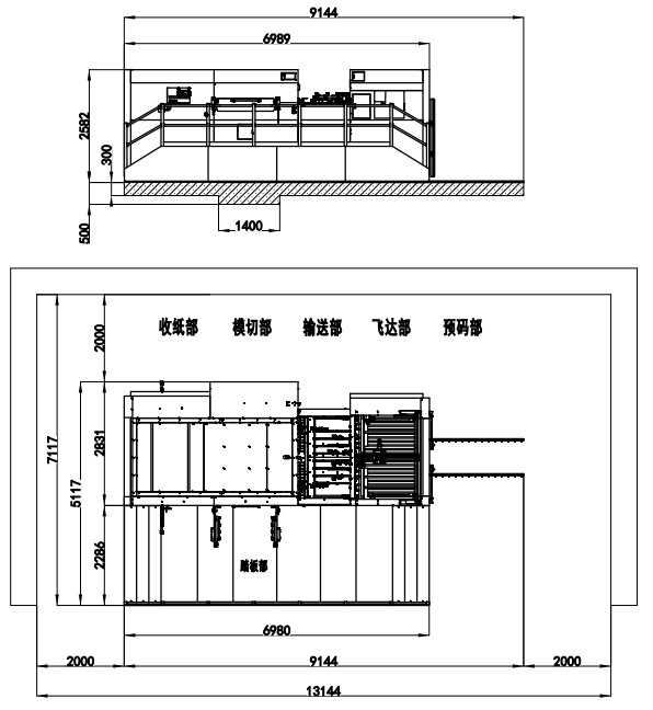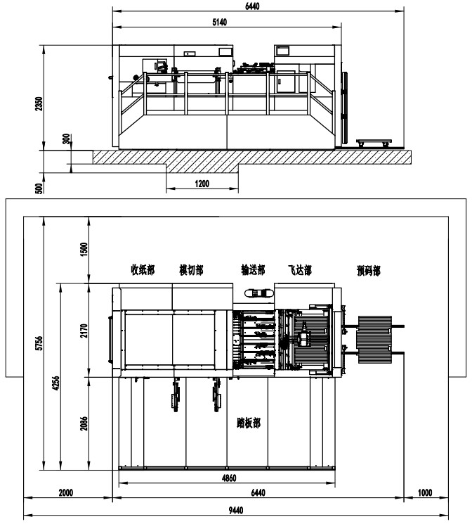 | Machine Dimensions | 6440×4256×2350mm (L×W×H) (L: paper prepared track included, W: platform included) | 8276×4506×2467mm (L×W×H) (L: paper prepared track included, W: platform included) | 8033×4688×2435mm (L×W×H) (L: paper prepared track included, W: platform included) | 8546×4706×2452mm (L×W×H) (L: paper prepared track included, W: platform included) | 9144×5117×2582(L×W×H) (L: paper prepared track included, W: platform included) |