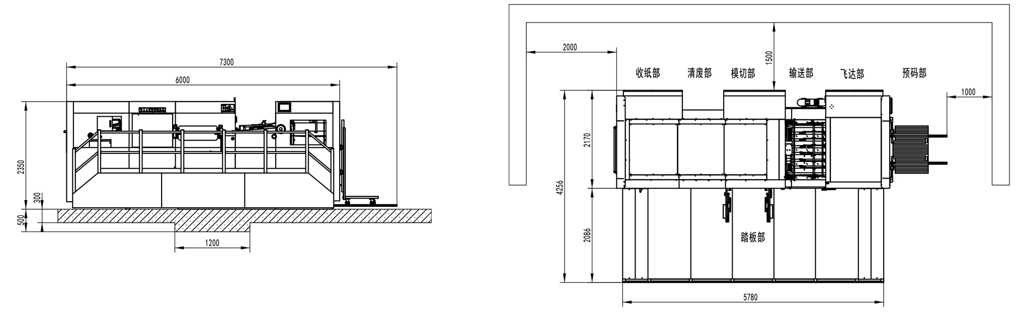 | Machine Dimensions | 7300×4256×2350mm(L×W×H) (L: paper prepared track included, W: platform included) |