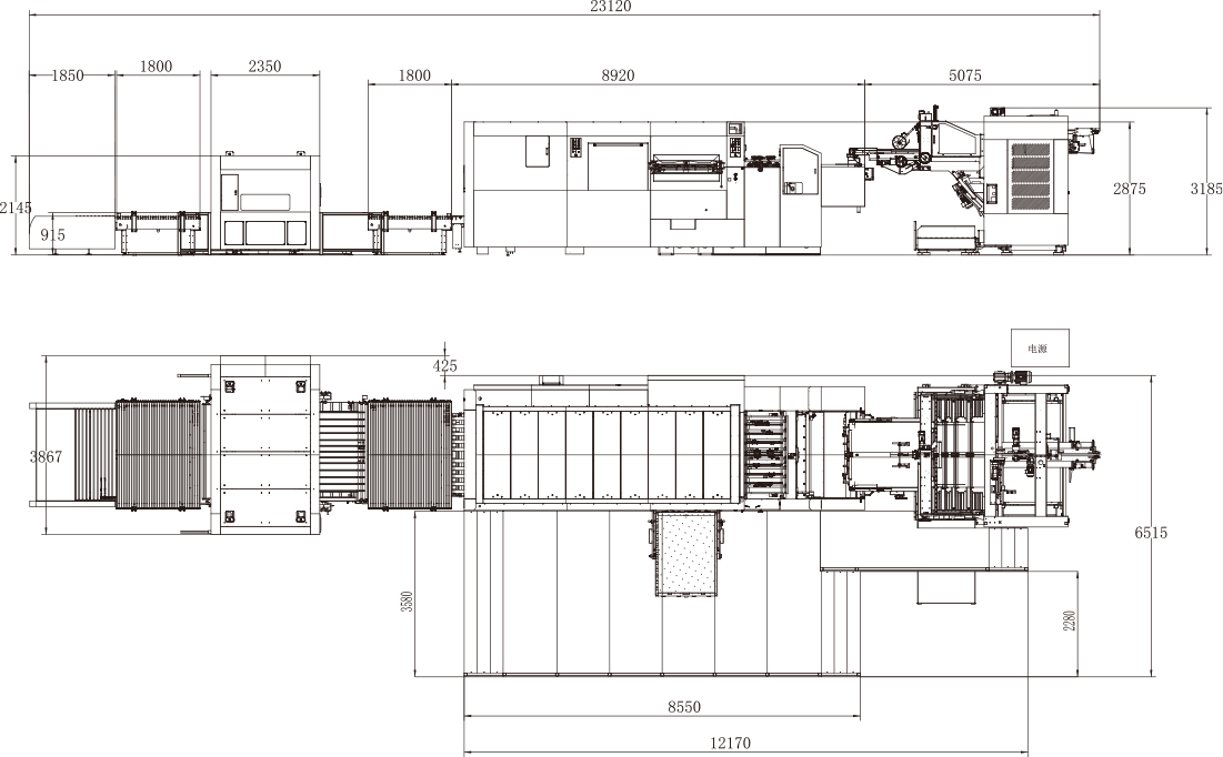 | Machine Dimensions(Batch Delivery Conveying) | 11400×5500×2800mm(L×W×H) (L: paper prepared track included, W: platform included) | 11892×5970×2876mm(L×W×H) (L: paper prepared track included, W: platform included) | 13489×6560×2972mm(L×W×H) (L: paper prepared track included, W: platform included) | 15870×7160×2972mm(L×W×H) (L: paper prepared track included, W: platform included) |