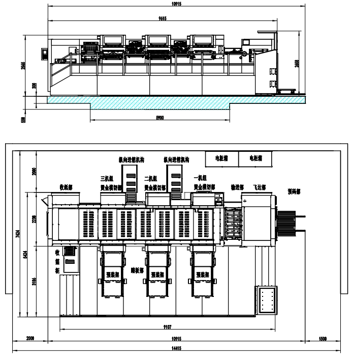 Machine Dimensions(Including Die Preloader)10915×7424×2658mm(L×W×H) (L: paper prepared track included, W: platform included)