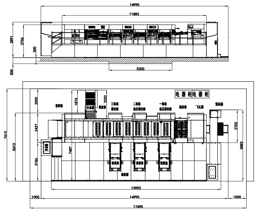 | Machine Dimensions(Including Die Preloader) | 14995×7613×2891mm(L×W×H) (L: paper prepared track included, W: platform included) |